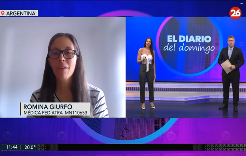Entrevista a la Dra. Romina Giurfo en El diario del domingo de Canal 26. Alerta por el brote de tos convulsa con 4 muertos y 382 casos en el país.
